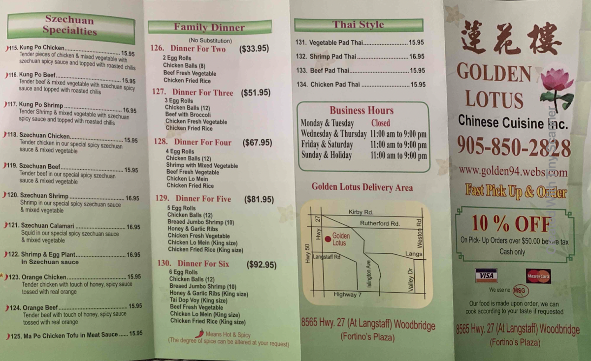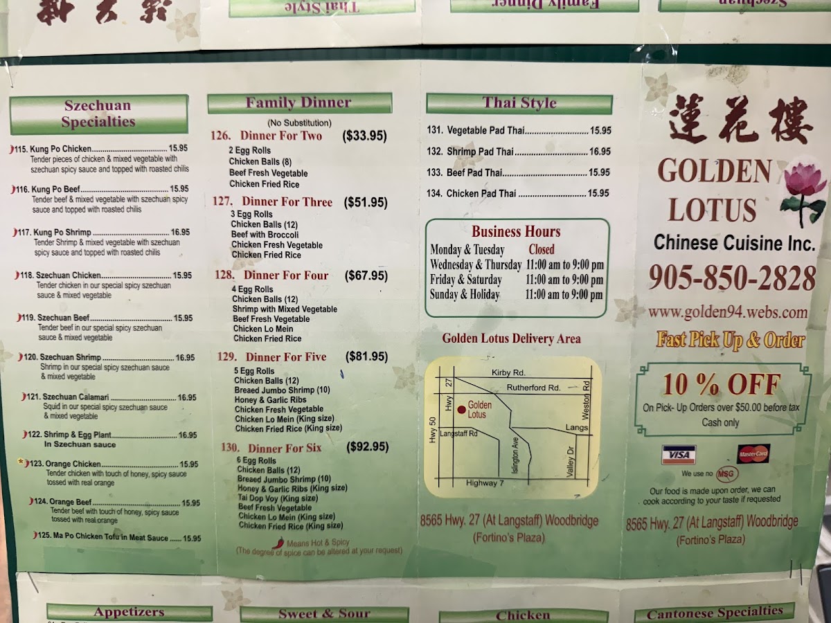 The menu at Golden Lotus Chinese Food offers a warm and approachable selection of classic Chinese dishes, presented in a straightforward, casual style. Whether you’re stopping by for a quick lunch or settling in for a relaxed dinner, the menu provides comforting and familiar flavors that resonate well with the inviting atmosphere of the restaurant.